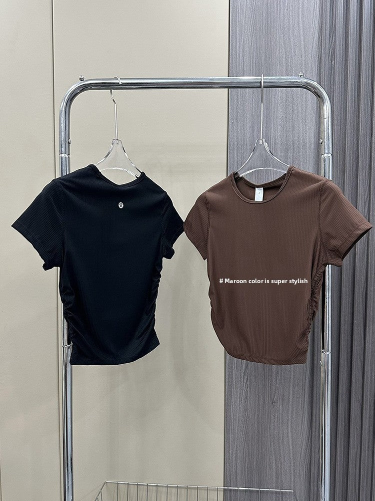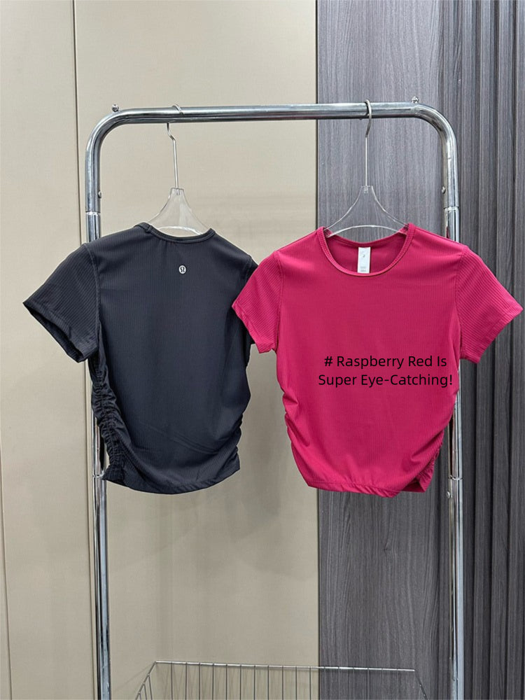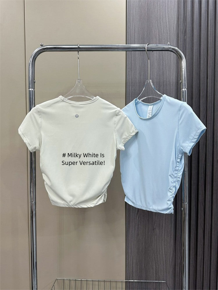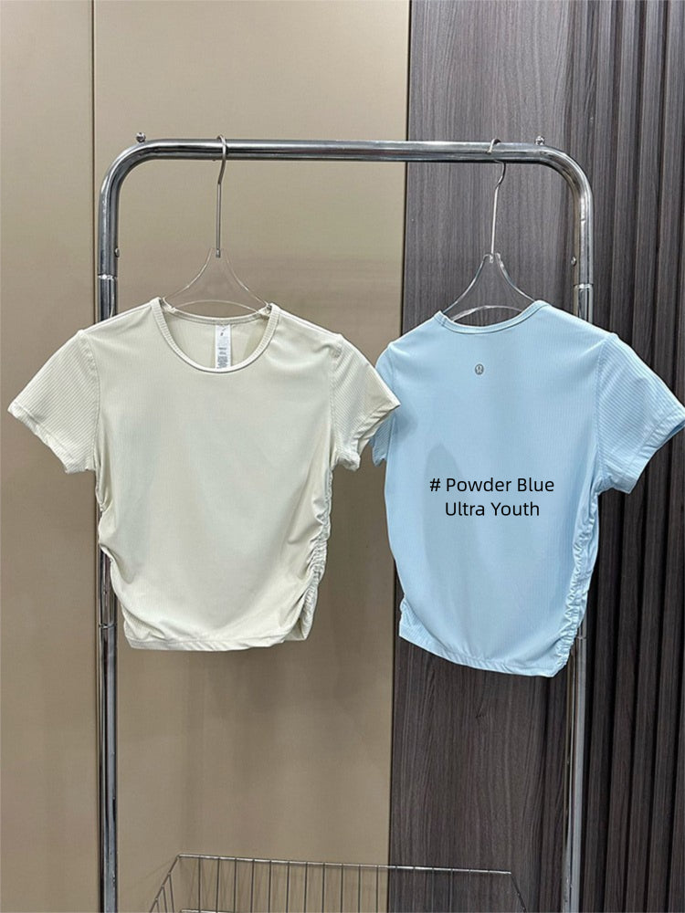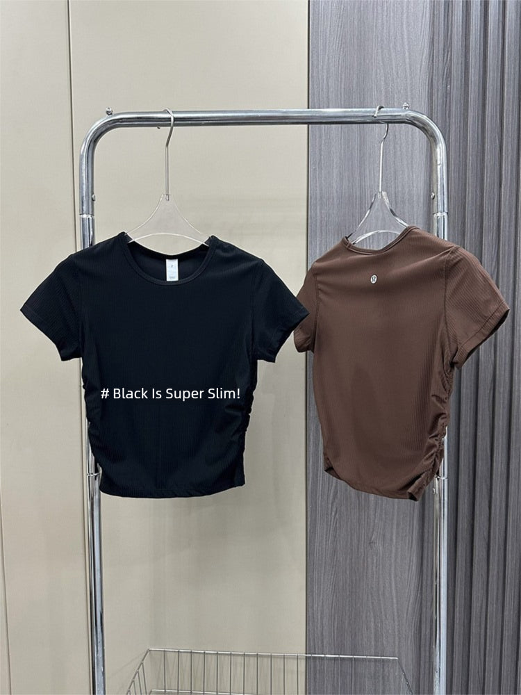 Lulu All It Bare Sensation Yoga Slim Fit Breathable Fitness Sports Short Ribbed Short Sleeve T-Shirt with Side Pleats
