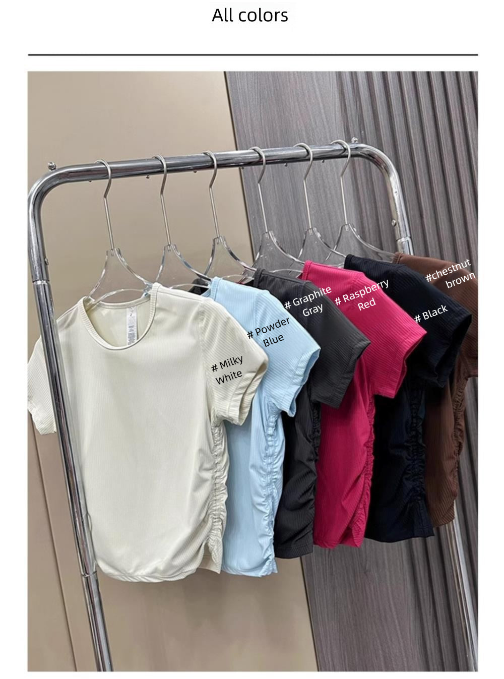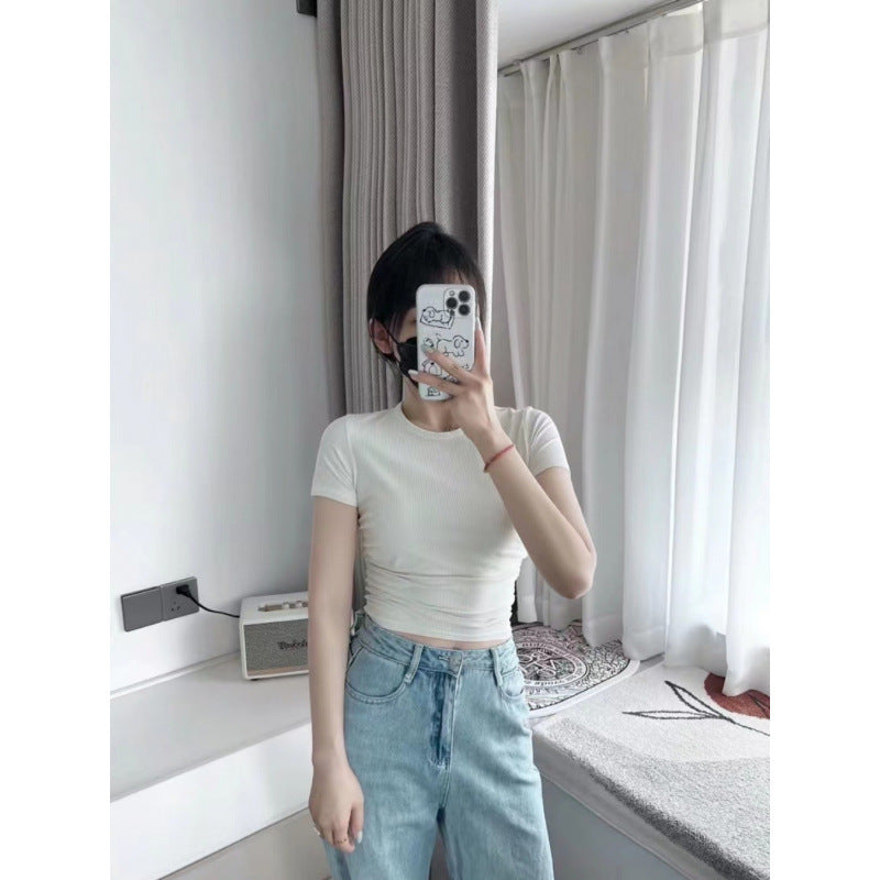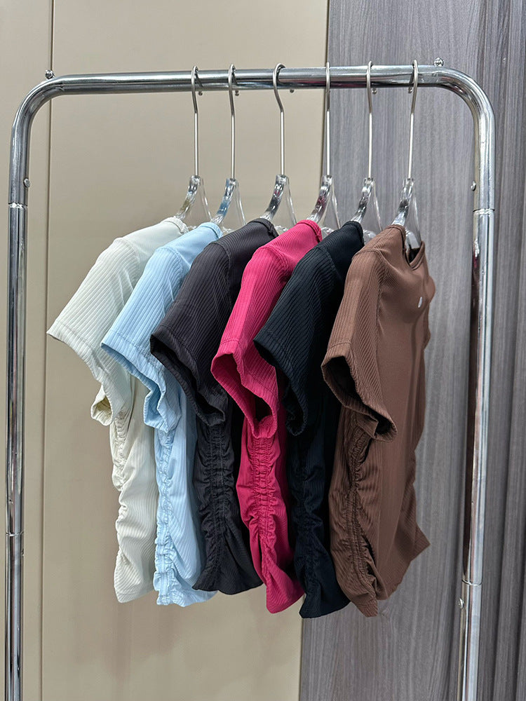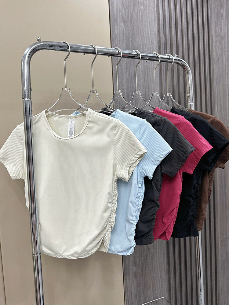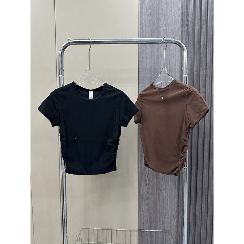 Lulu All It Bare Sensation Yoga Slim Fit Breathable Fitness Sports Short Ribbed Short Sleeve T-Shirt with Side Pleats