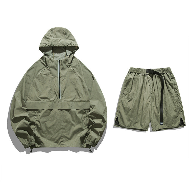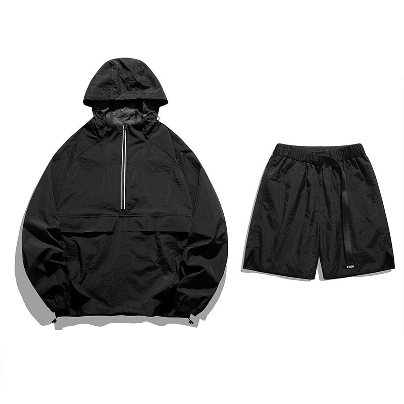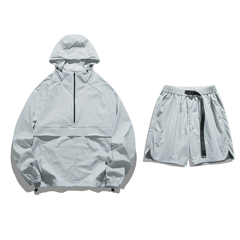 Sun Protection Clothing Set Outdoor Sports Ice Silk Thin Breathable Hooded Trendy Loose UV Protection Unisex
